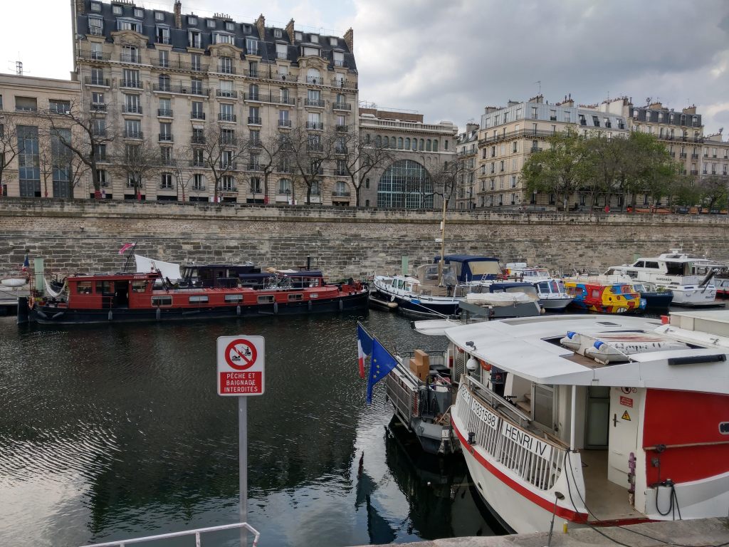 Après avoir mangé copieusement dans un petit fast-food turc, nous nous dirigeons vers l’hôtel. Bientôt arrivés sur le pont sur la Seine, nous voyons l’hôtel, mais également une péniche discothèque juste en face. L’hôtel est vraiment situé directement sur la Seine, avec une passerelle pour y accéder, ainsi qu’une bouée de sauvetage…!