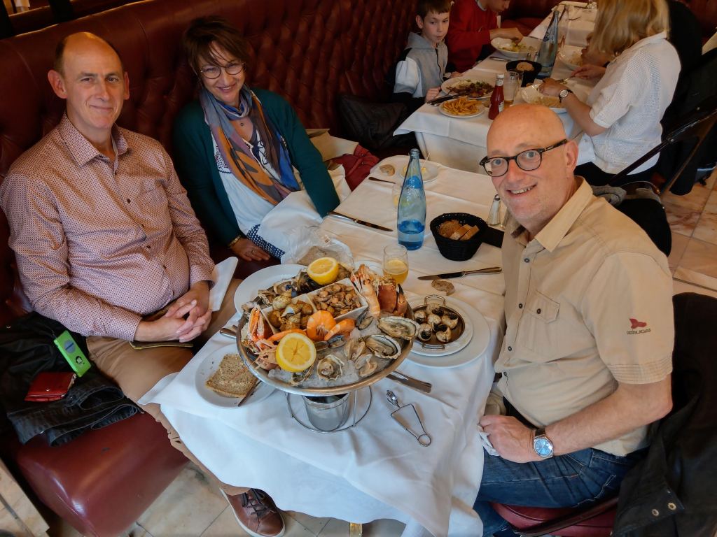 Rendez-vous à un restaurant spécialisé dans les fruits de mer à la Gare de Lyon avec mon fidèle ami d’enfance et d’école d’ingénieur. C’est assez difficile de trouver un endroit en Suisse alémanique où commander un plateau de fruits de mer et les prix sont parfois exhorbitants Le bar de la brasserie Lipp à Zurich facture l’huitre à l’unité, c’est 7 euros pièce…!