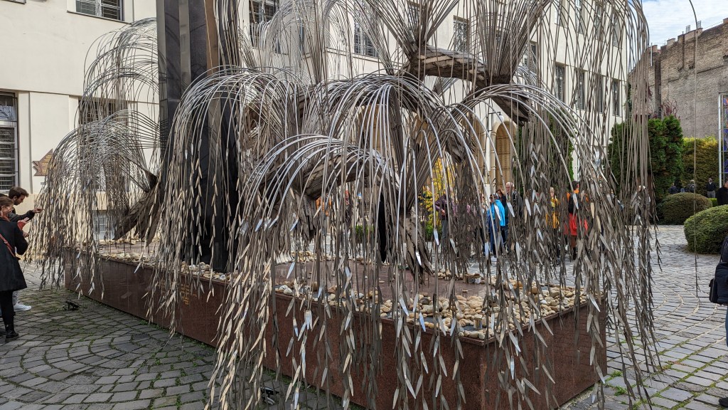 À l’extérieur, on peut voir un arbre en métal commémoratif. Nous apprenons au passage que Tony Curtis était est juif hongrois et que sa fondation a permis la reconstruction de la grande synagogue de Budapest.