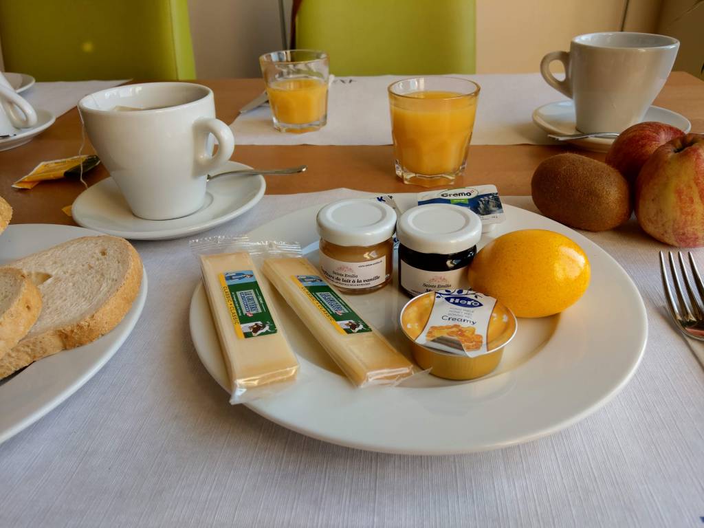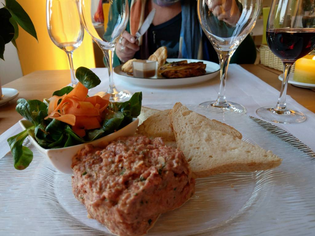 Le diner est classe… L’hôtel restaurant Taillard est un 4 étoiles. Vin jaune du Jura en apéro, composition de betteraves, filet de Sandre et dessert aux carottes pour moi. Ma femme a pris un menu du terroir. Vins de la région au verre.