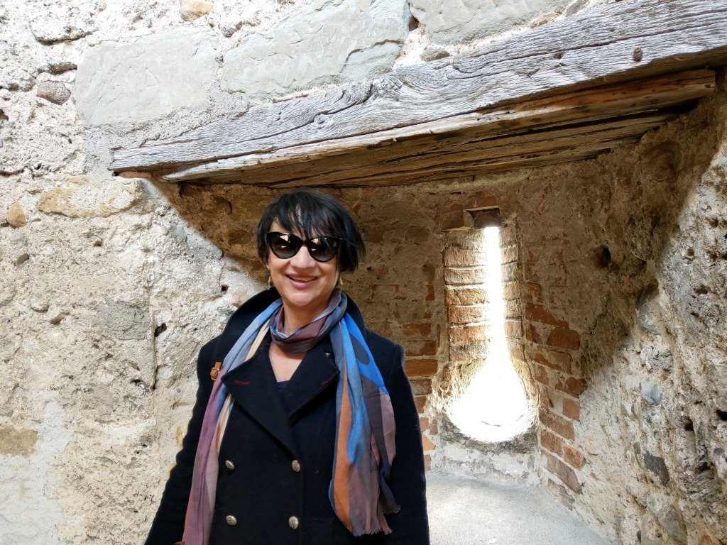 Suite de la visite dans les jardins du château. Photo de ma femme avant qu’elle soit choquée par un appel de son cabinet médical au sujet d’un grain de beauté qui doit être opéré. Encore une tuile pour elle…